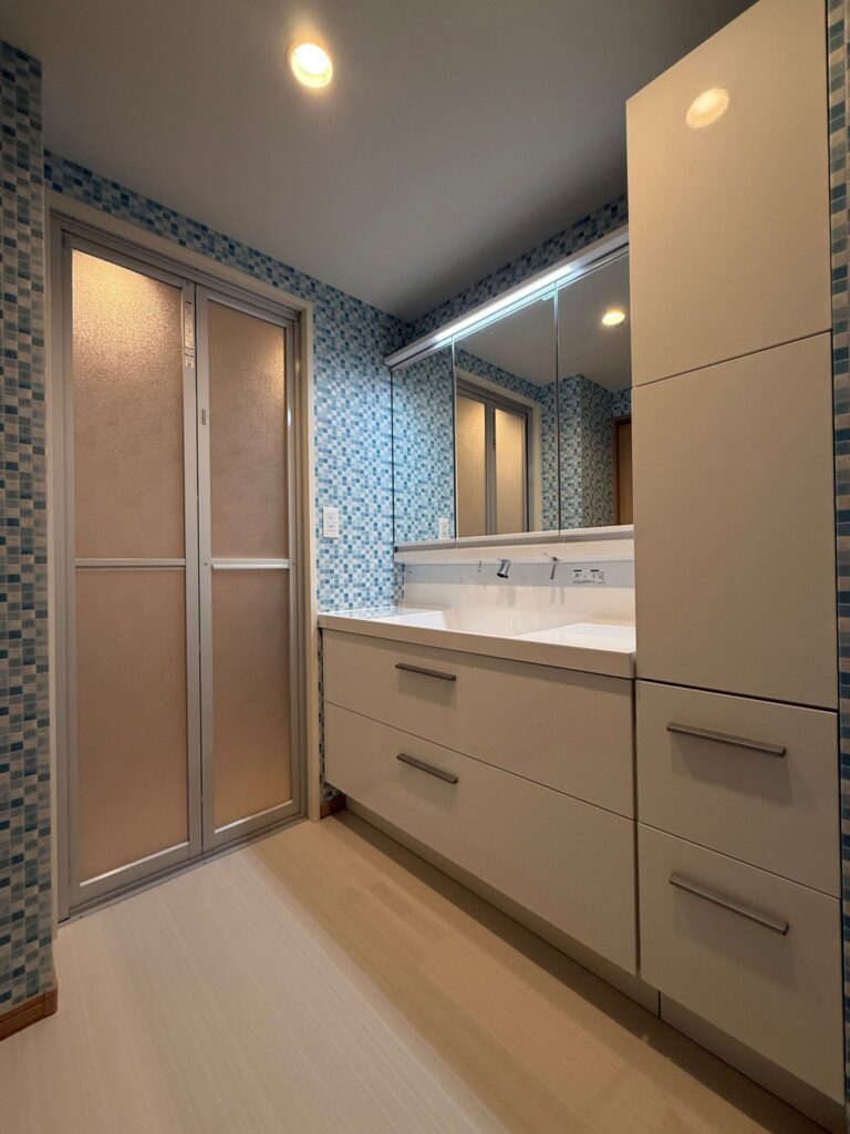 福岡市中央区D様邸 建物:マンション ●洗面台仕様 扉:グロスホワイト 洗面器:プレーンネオホワイト
