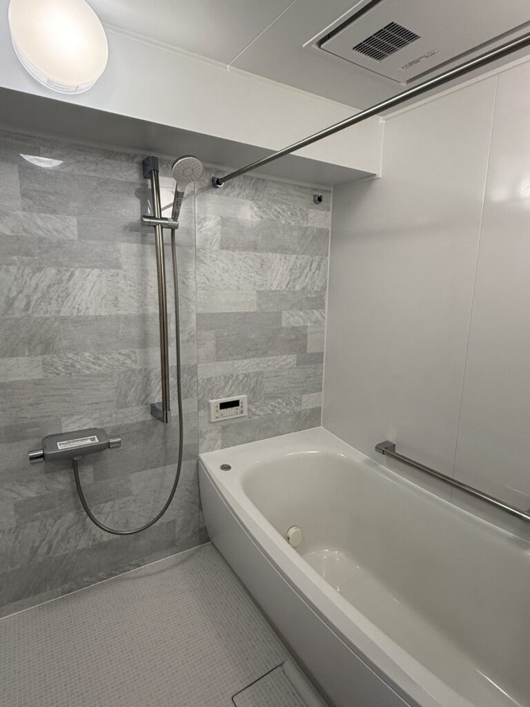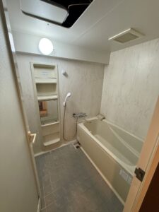 福岡市中央区N様邸 建物:マンション ●バス仕様 壁アクセント: パティオホワイト 床:ホワイト(タイル調)