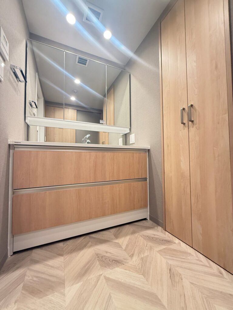 福岡市中央区M様邸 建物:マンション ●洗面台仕様 扉:メープル柄 洗面器:ホワイト
